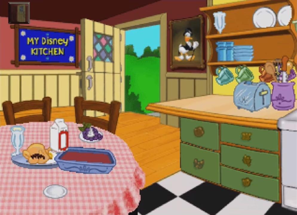 In My Disney Kitchen kids can whip up culinary delights using tons of wacky appliances and gadgets. Using the recipe box as their guide, youngsters can select from an assortment of tasty treats. Kids can bake and decorate cakes, or try out their griddle skills as a short order cook. Joining in on the fun are the neighbors from across the street, Mickey and Minnie Mouse, who love to stop by and visit the budding chefs in the kitchen. The art and voices are reminiscent of Disney's classic cartoons.