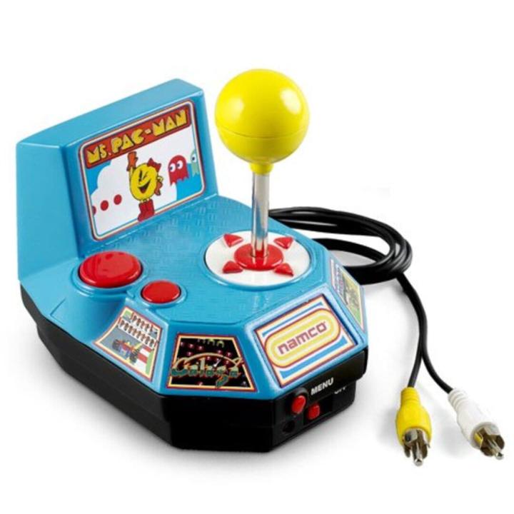 Features Ms. Pac-Man, Galaga, Xevious, Mappy, and Pole Position. A later revision adds the ability to save high scores, which all future Jakks Pacific systems also featured. It was re-released in 2005 with a GameKey slot, which were compatible with "NM" GameKeys.