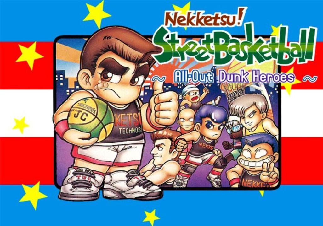 To our amazement, Kunio entered the Downtown Quiz and won. Thanks to him, we got a journey to the United States for 15 days as a victory prize. First thing first, Kunio went to see "Johnny" at the Oklahoma high school that he had befriended while in an exchange program. Along for the trip was also Riki, and thanks to him, he entered us into a street basket tournament. Lead us to victory even overseas, Kunio! The game was originally released as Nekketsu Street Basket: Ganbare Dunk Heroes, but has since been localized as Nekketsu! Street Basketball All-Out Dunk Heroes.