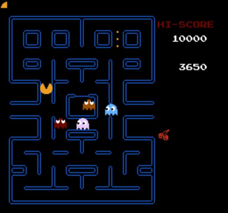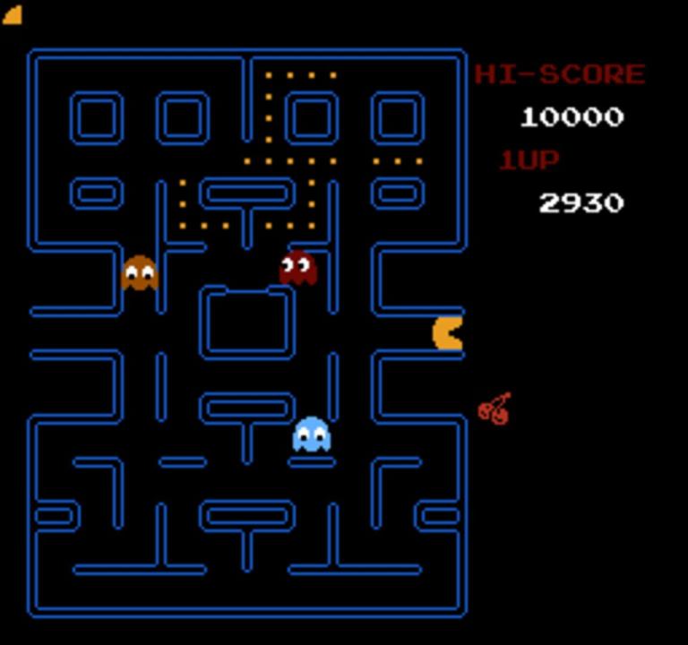Pac-Man is a 1980 maze action video game developed and released by Namco for arcades. It is considered one of the classics of the medium, virtually synonymous with video games, and an icon of 1980s popular culture. Players control Pac-Man, who must eat all the dots inside an enclosed maze while avoiding four colored ghosts. Eating large flashing dots called Power Pellets causes the ghosts to temporarily turn blue, allowing Pac-Man to eat them for bonus points.