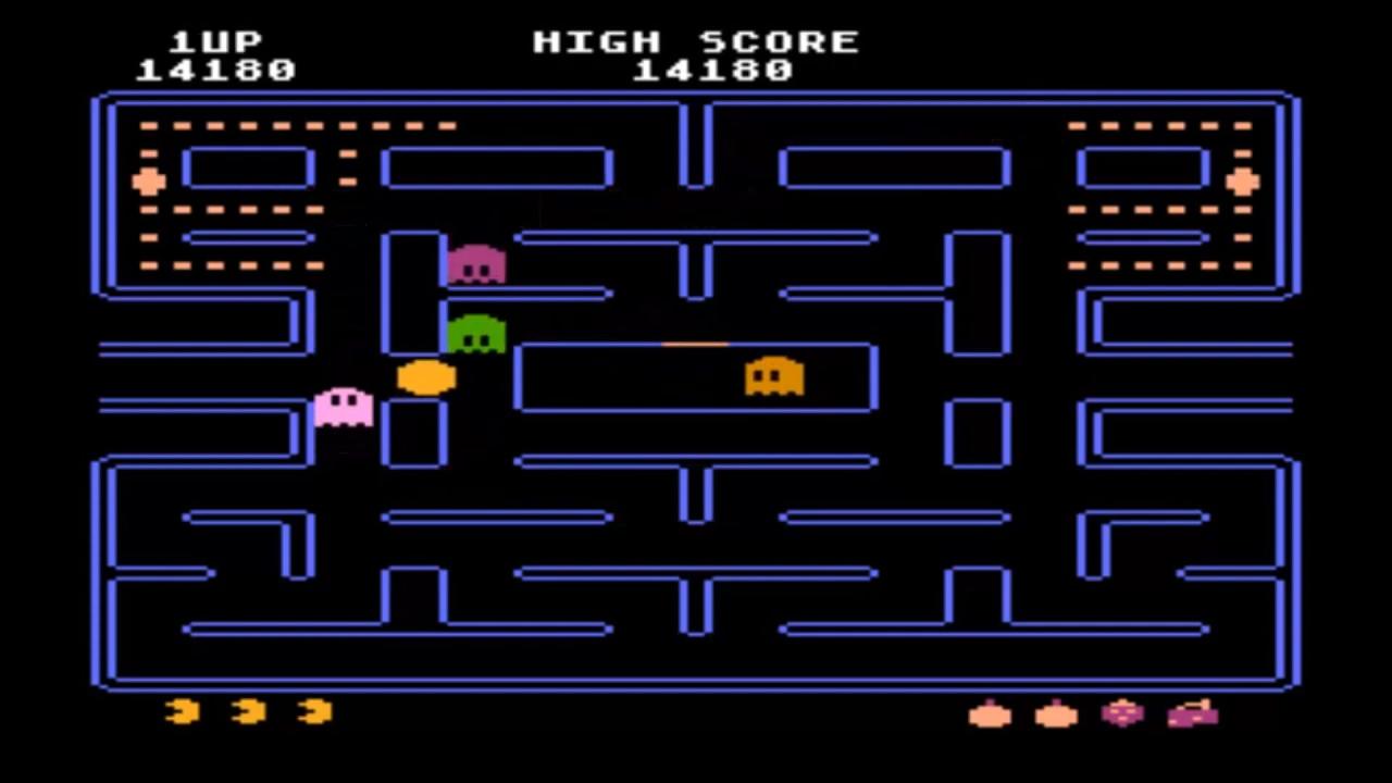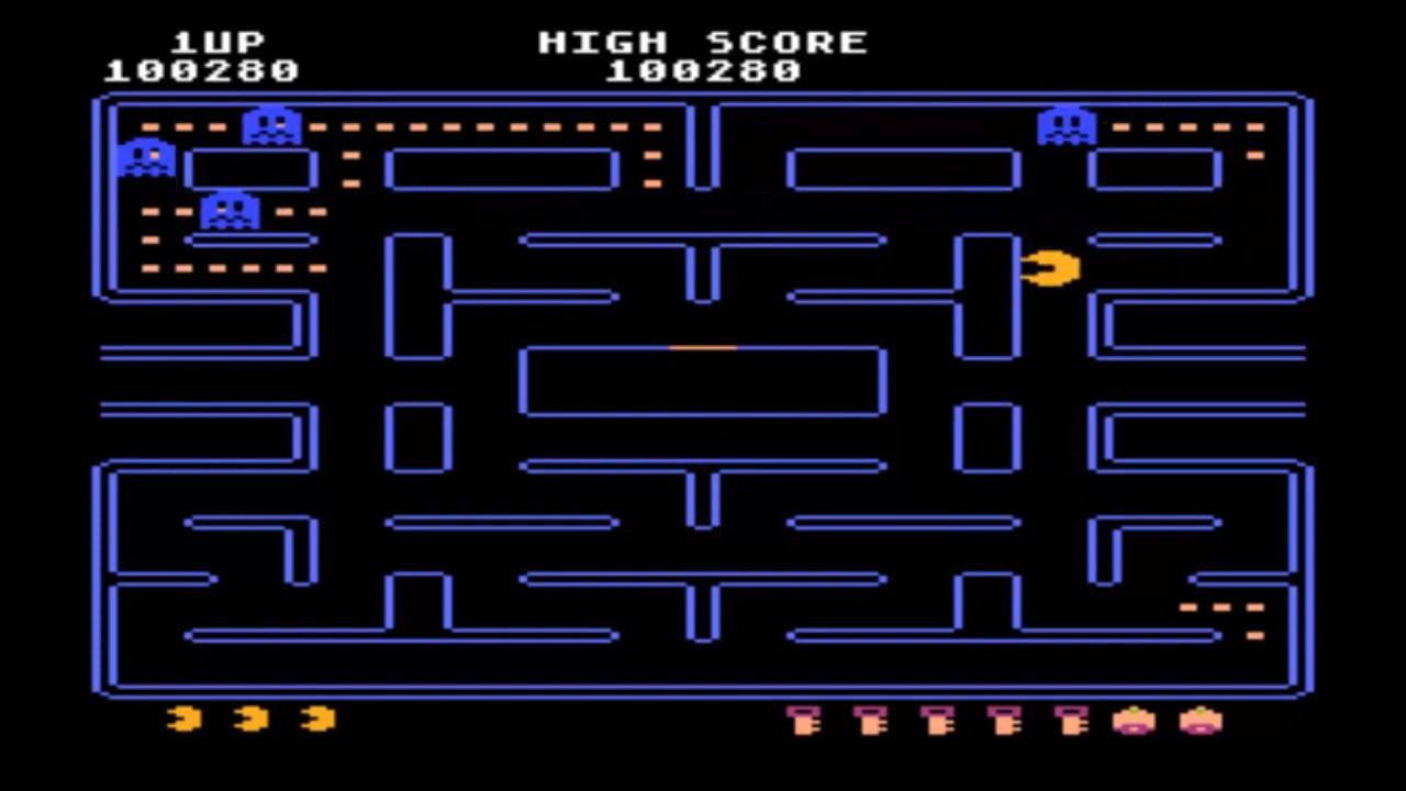 The Atari 5200 port of Pac-Man, which is a port of the Atari 8-bit version. One of the most popular and influential games of the 1980's, Pac-Man stars a little, yellow dot-muncher who works his way around to clear a maze of the various dots and fruit which inhabit the board.