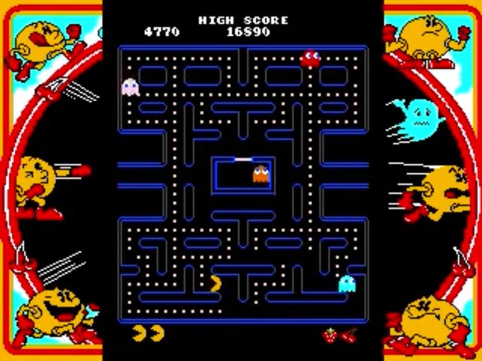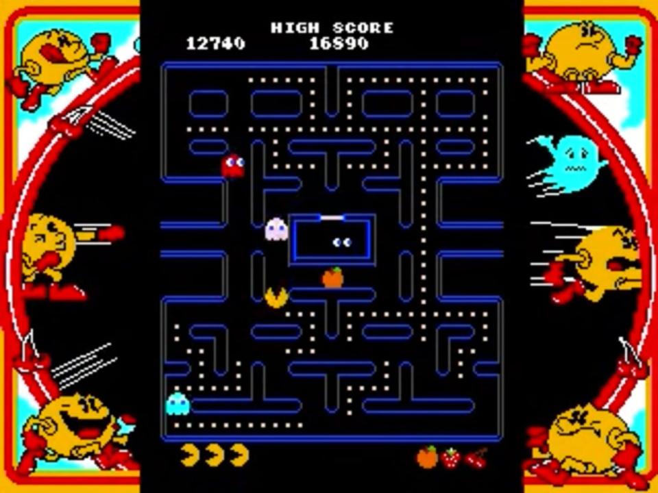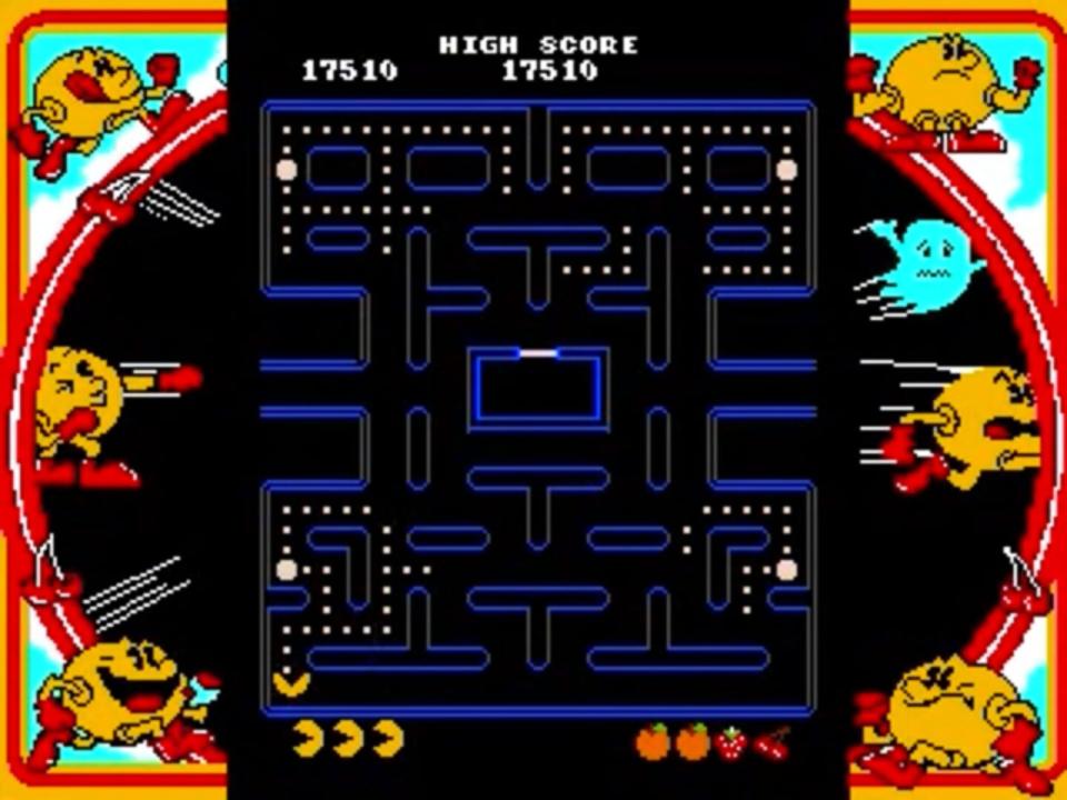 The Namco Museum port of Pac-Man. This version of the game, introduced in Namco Museum Volume 1 (1995), is notable for being perhaps the most frequently rereleased "official" version of Pac-Man from 1995 to 2005. This version of the game often featured a border based on the classic Puckman artwork surrounding it. Being based off the original's source code, it is mostly faithful to the arcade version, but a few things were altered in gameplay: Pinky always aims exactly four spaces in front of Pac-Man when in chase mode (in the original, this became four spaces up and four spaces to the left when Pac-Man was facing up, due to a glitch). Inky's behavior has been considerably altered; he exclusively aims for Blinky's position in chase mode. The ghosts' eyes will not travel up through the one-way paths when returning to regenerate. When a ghost is sent back to the Ghost Home to regenerate, they will always come back out instantly, even if Pac-Man lost a life on the current round. (Incidentally, this fixes a glitch that can occur in the original where Pac-Man can trap Pinky, Inky, and Clyde in the Ghost Home.). Ghosts will exit the Ghost Home to the right if their target position happens to be there. In the original game, they will only exit to the right if the behavior mode (i.e. scatter, chase, frightened) changes while they are in the Ghost Home. If a bonus fruit appears and Pac-Man eats a ghost, the timer that controls how long the fruit stays onscreen halts with everything else. This makes it impossible for fruit to disappear while Pac-Man is eating a ghost.