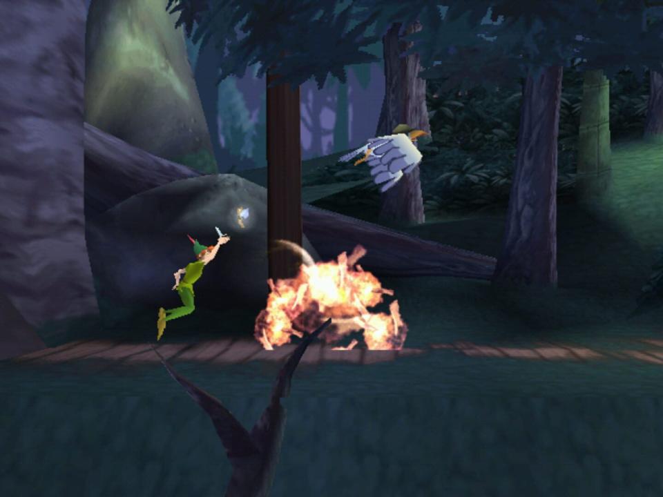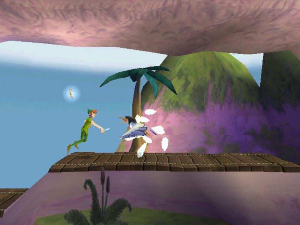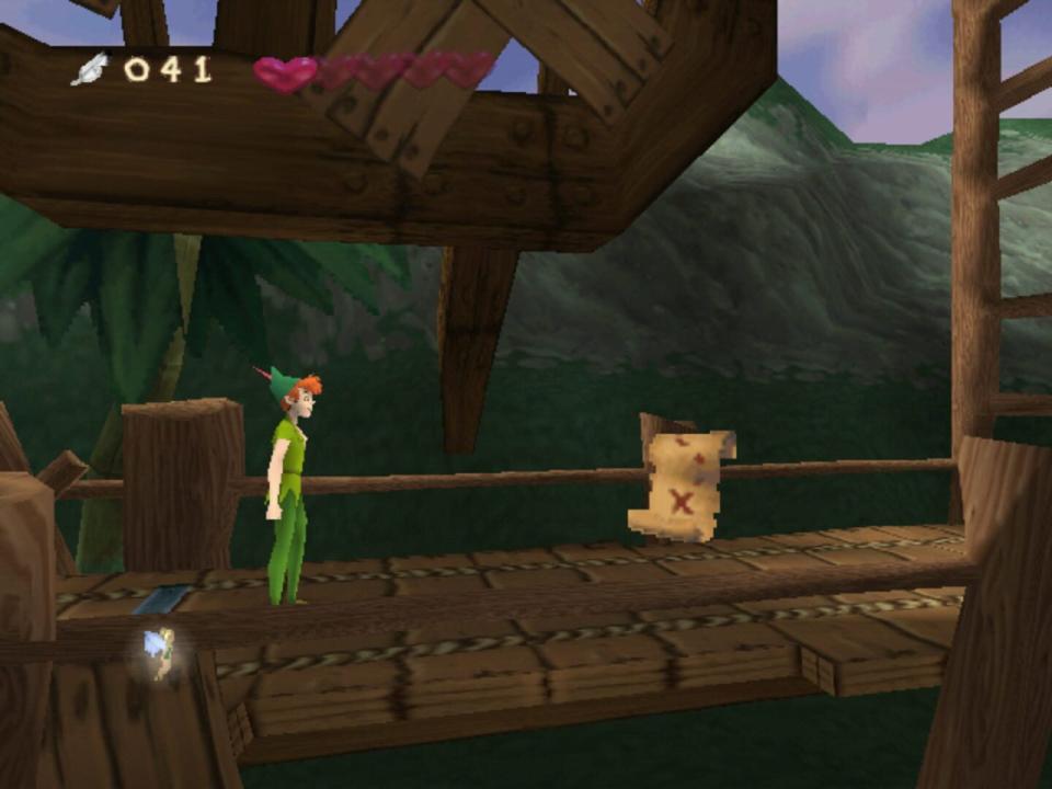 The nefarious pirate Captain Hook found a map to Neverland's hidden treasure and intends to plunder it. Since he now knows where the treasure is located he hacks up the treasure map to pieces and scatters the pieces throughout Neverland so no one else will be able to locate the treasure. Meanwhile, the fairy Tinkerbell informs Peter Pan that there is a treasure somewhere in Neverland. So now Peter Pan and Tinkerbell are on a quest to locate the hidden treasure too by finding and putting back together the pieces of the sliced up treasure map. Players take the role of Peter Pan and occasionally as Tinker Bell throughout 20 different stages. Some of the stages include Hangman's Tree, the Mermaid Lagoon, Pirate's Cove, Indian village, and Skull Rock.
