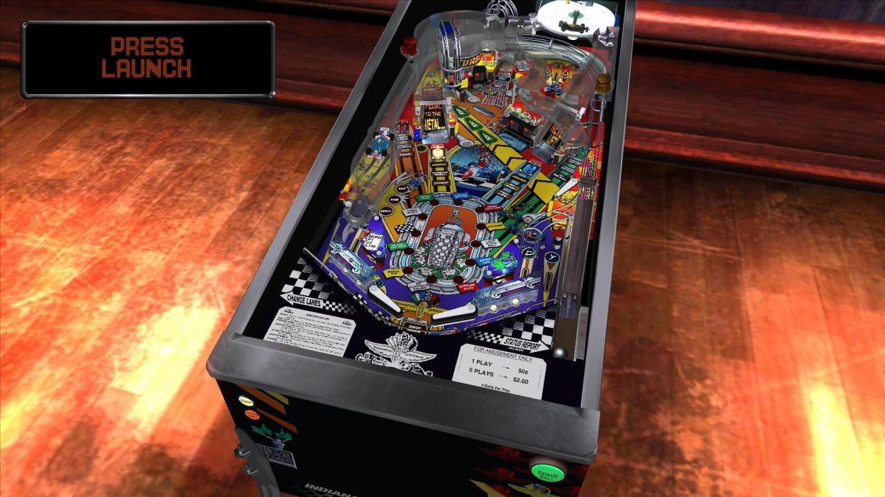 Indianapolis 500 (1995) is a high speed table designed by Dennis Nordman. Players reactions are challenged by the fastest game around as they take on the role of an Indianapolis 500 driver in the greatest spectacle in auto racing. A unique Turbo Lock unit saves balls in its rotating chamber and sends them screaming back down to the Flippers for intense multiball action! Another feature unique to this table are the Light Up targets that show a players progress right on the target face. To top it all off, a mini Indy car races around a track to create a one of a kind shaker motor as players are tasked with going head to head with other drivers. 2,249 units of this table were produced.