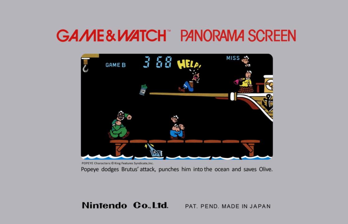 The Panorama Screen version of Game & Watch Popeye. It is a different game from the Wide Screen series Popeye.