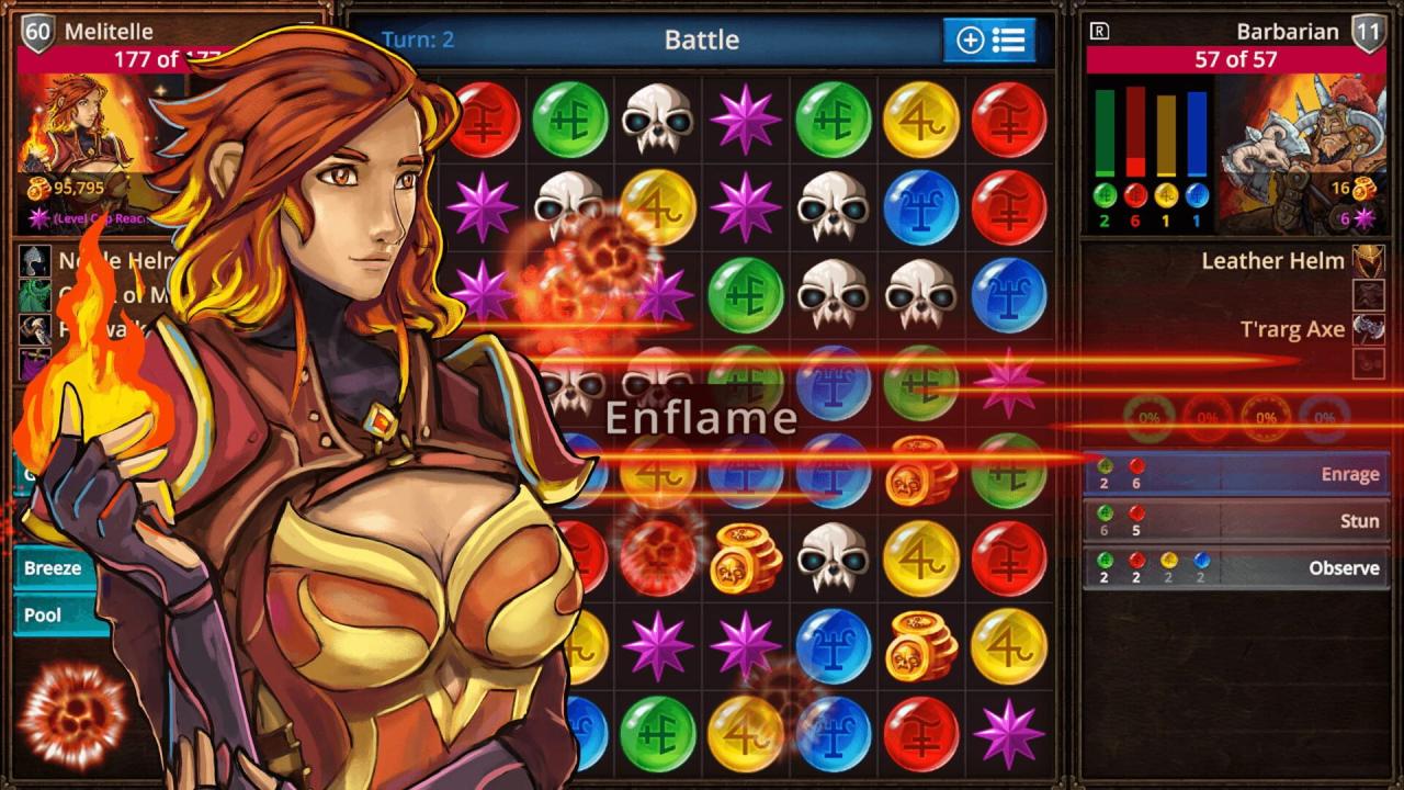 Save the Kingdom of Etheria from the evil Lord Bane. Make matches of different crystal types which build your inventory of spells. Outscore your oponents and unleash your spells to disrupt their matching chances and lower their totals. Build your heroic character by winning head to head battles.