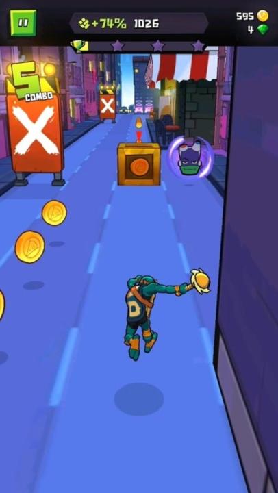 Rise of the TMNT: Ninja Run is an action game starring the legendary Ninja Turtles. We're talking about a level-based runner inspired by the Rise of the Teenage Mutant Ninja Turtles show. That's right, this 2018 comedy revisits the all-time classic Teenage Mutant Ninja Turtles (TMNT or The Ninja Turtles). You get to go on an adventure alongside Raphael, Donatello, Leonardo, and Michaelangelo through 50 different missions in which you have to collect coins in order to stop the New York mutants from gaining control over the city. The game is very similar to other classic games such as Subway Surfers or Temple Run as far as the gameplay goes: your character moves horizontally through different lanes by sliding your finger across the screen. You can also jump and slide under objects by swiping up or down. Each Ninja Turtle includes its own unique attacks, which you can perform by tapping on the screen. There's even a way to customize them more by using these three elements: costumes, weapons, and skills. Earn these unlockables by advancing through the different levels, or by playing with a roulette (but it'll cost a pretty significant amount of coins). With your earnings, you can also level up your characters. Rise of the TMNT: Ninja Run is an incredible videogame that combines endless runners and New York's Ninja Turtles. Shout Cowabunga at the top of your lungs and submerge yourself in a comics universe with the game's eye-catching style.