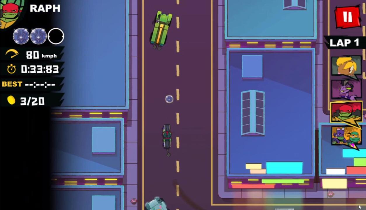 It's a race around NYC! Play as your favorite Rise of Teenage Mutant Ninja Turtles heroes or mutants in this top-down racer. Compete in tournaments, quick races, or give the Free Spin mode a whirl. Can you beat the best time?