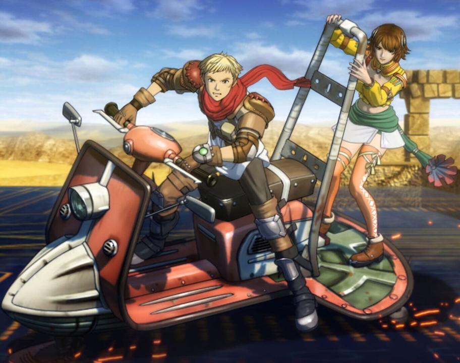 Rogue Galaxy is an action role playing game set in a futuristic fantasy universe, in which the player moves through a continuous environment with no load time between overworld exploration and battles. Battles occur as random encounters, Rogue Galaxy uses a real-time hack and slash combat system in which the player fights with a party of three characters. The player has direct control over only one character, although they can change which character that is at any time. The two NPCs fight independently of the player character, based on a strategy selected prior to the battle. Available strategies include fighting especially aggressively, targeting a specific enemy or not fighting at all. The strategy can also be changed at any time during the battle. Additionally, the player can issue specific orders to the NPCs during combat, such as having them use an item or activate one of their special abilities.