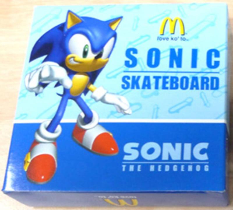 Sonic Skateboard is an LCD game created for distribution at McDonald's restaurants. They were offered as a part of Happy Meals for a limited time in 2004. This game was also released under the name Sonic the Hedgehog Extreme Boarding. There are two main buttons on the game which control left and right movement. The game is a recreation of the Sonic 2 special stage as the player moves forward avoiding obstacles. There are three lanes that can be moved to and one is always open, while others may be occupied by bombs. There are also Rings which litter the screen, which can be collected. Once the player has collected 20 rings, they will move to the next level, which will be more fast paced, and thus harder. There are four levels to complete, and when one is completed, you will see a “Thumbs Up”, as it appeared in Sonic The Hedgehog 2.