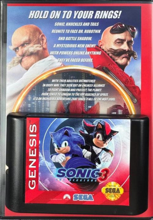 Sonic the Hedgehog 3 is a special promotional cartridge created for the Sega Genesis by Paramount Pictures to promote the then-upcoming Sonic the Hedgehog 3 film. The cartridge was distributed to content creators on 21 November 2024, to promote the film and celebrate the release of advance tickets on 25 November 2024. Along with being a fully functional Sega Genesis game, the cartridge also includes a cheat code that, when entered, reveals the release date for the final trailer. As a result, this marked the first time since Sonic 3D Blast (1996) that an official Sonic entry for the system was released.