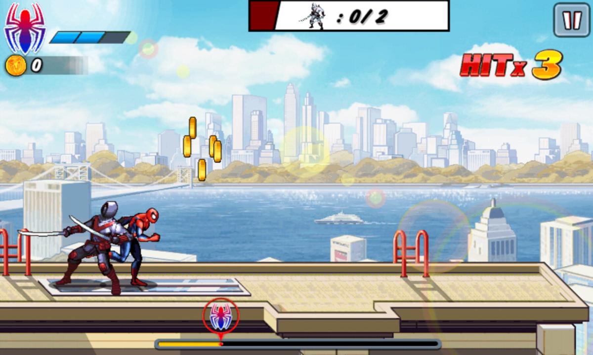 Spider-Man: Ultimate Power is an arcade side-scrolling game, consisting of running, jumping, swinging and fighting elements. There are two modes available: Story and Survival. The Story mode requires completing various missions to progress through the story to save Mary Jane kidnapped by Green Goblin, Sandman and Venom. Missions include various simple tasks such as collecting things, defeating designated enemies or rescuing hostages. The player may select one of a few available characters, each with some special abilities. Unlocking the heroes requires spending rare to find diamonds or real cash. Hard-gained game currency can be used for upgrading the hero's powers or applying power-ups. The gameplay features over 40 locations, divided into several city districts.