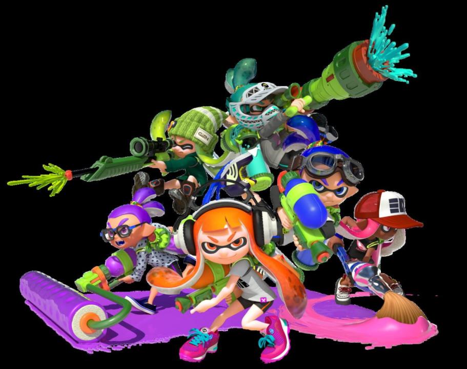 Splatoon is primarily a team-based third-person shooter which is playable by up to eight players in 4-vs-4 matches, although the game also features a single-player campaign. Players control characters called Inklings, wich can change between human form and squid form. Transforming into a squid allows players to swim through ink of their own color, even up walls and through grates, hiding from the enemy and replenishing their ink supply in the process.