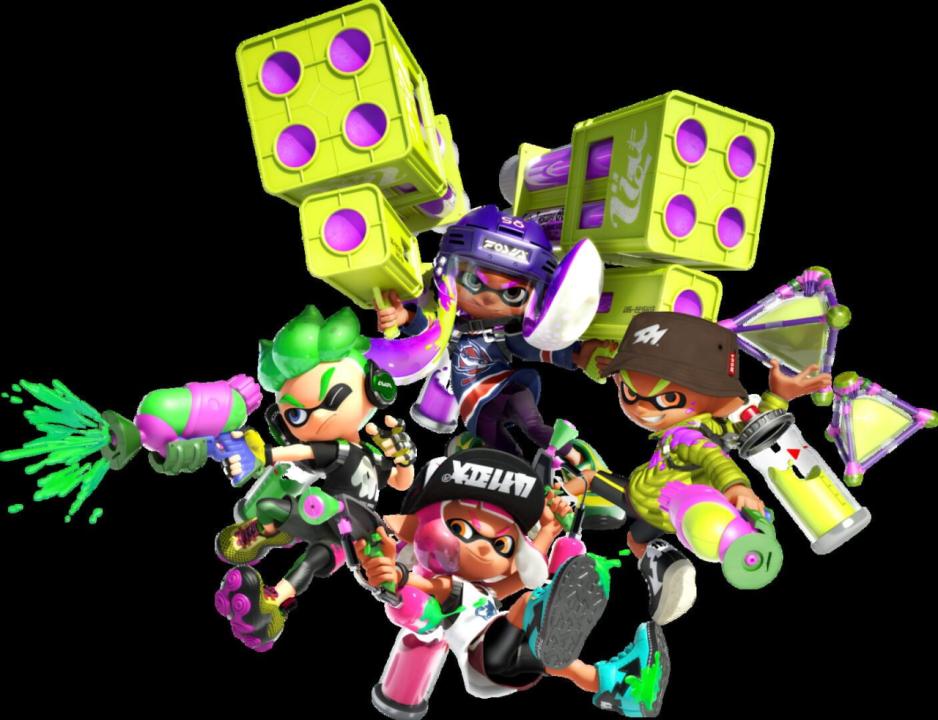 Splatoon 2 is a multiplayer third-person shooter in which players control characters known as Inklings and use colored ink to attack opponents and clear goals. Inklings can alternate between humanoid form, during which they can fire ink with their weapons, and squid form, which allows them to swim through ink of their own color in order to move quickly and replenish ink supplies.