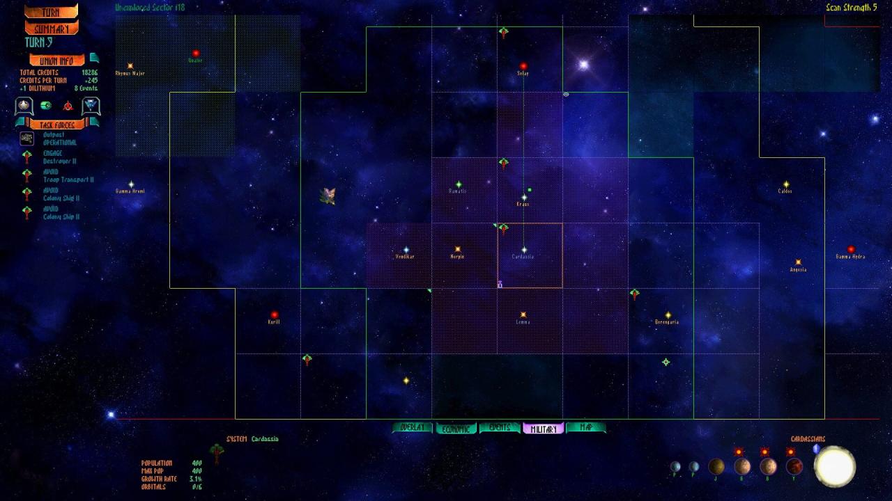 Star Trek: The Next Generation - Birth of the Federation is a 4X turn based strategy game based on the popular sci-fi television show. Take one of 5 familiar Star Trek races from small beginnings, to the dominant force in the galaxy. Control one of five Star Trek Empires: Federation, Klingon, Romulan, Cardassian or Ferengi. Use diplomacy, research, espionage to dominate the galaxy.