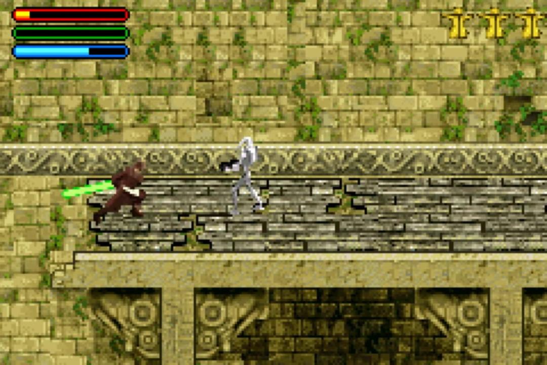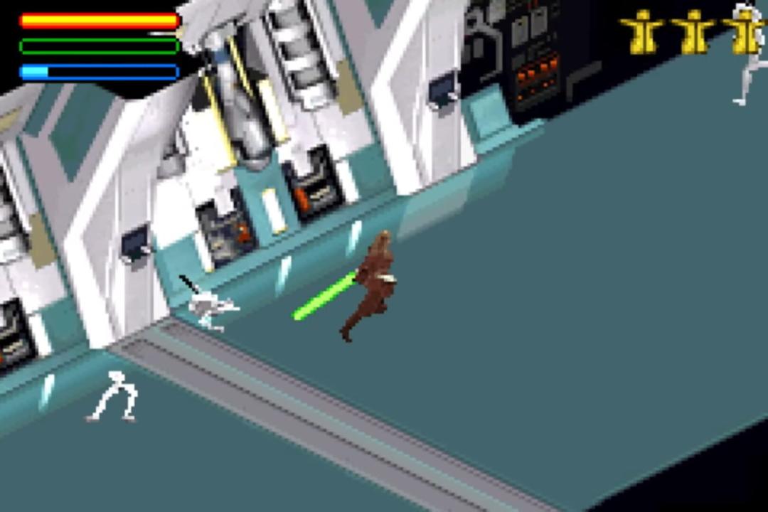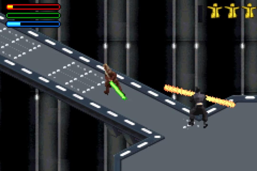 Star Wars: Jedi Power Battles follows the story of Episode I: The Phantom Menace. The Game Boy Advance port featured 3 playable characters as opposed to 5 on the PS1 and Dreamcast, with only Obi-Wan, Qui-Gon, and Mace Windu being playable. The game alternates between an isometric view and side-scrolling.