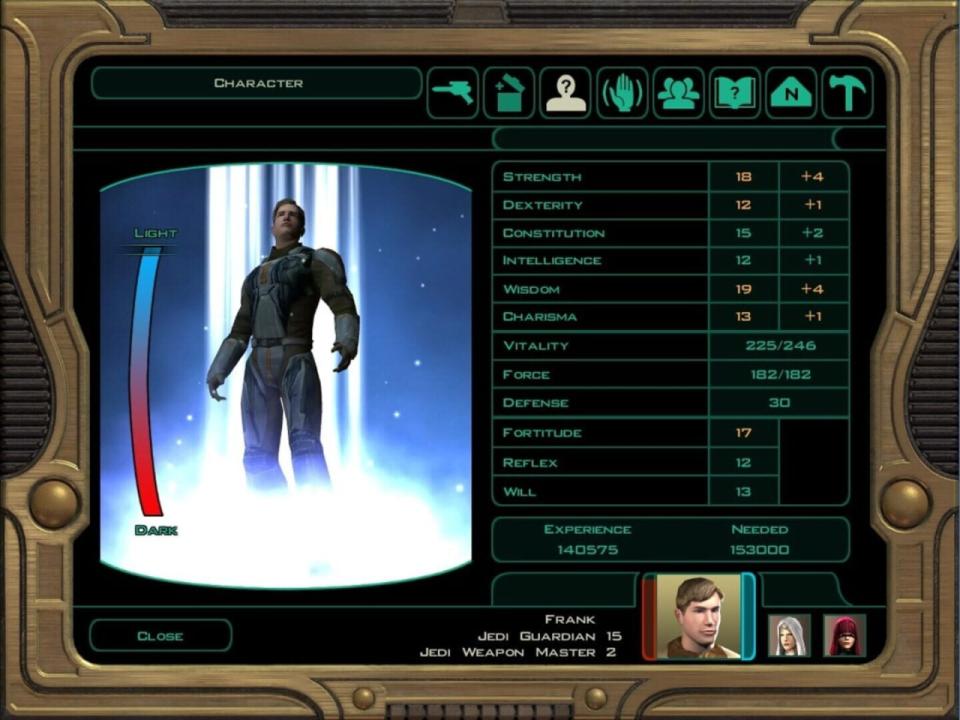 It is a perilous time for the galaxy. A brutal civil war has all but destroyed the Jedi Order, leaving the ailing Republic on the verge of collapse. Five years after the events of Star Wars Knights of the Old Republic, in a time when the Jedi have been brought to the edge of extinction, a former Jedi Knight exiled from the Jedi Order embarks on a tribulous journey to restore their connection to the Force. You must make the choices that turn The Exile to either the light side or the dark side of the Force, and travel to six planets picking up additions to your party along the way, to either help or hinder the Republic's efforts to bring peace and stability to the galaxy.