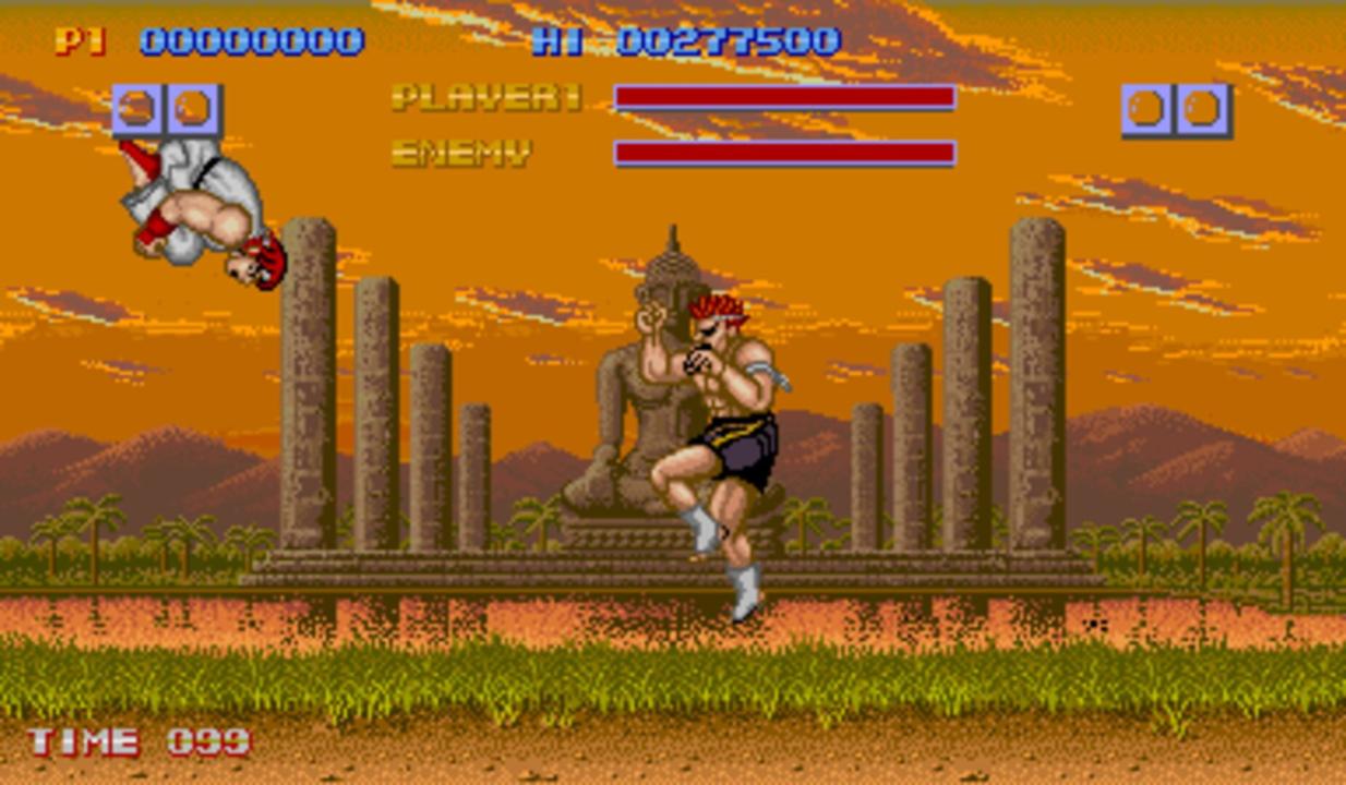 Street Fighter is the first fighting game produced by Capcom and the very first game in the Street Fighter series. While it did not achieve the same popularity as its sequels when it was first released, the original Street Fighter introduced some of the conventions made standard in later games such as attack buttons and special command-based techniques.