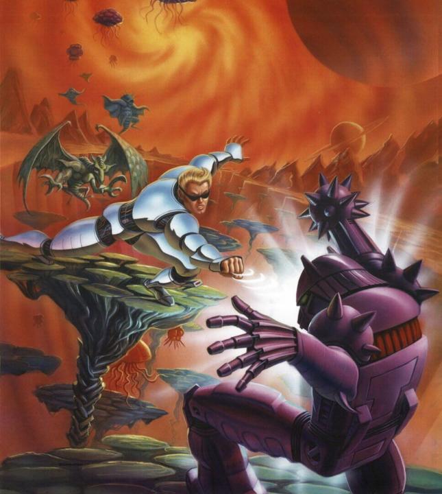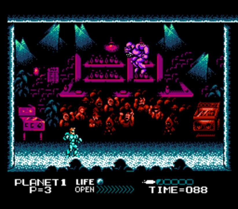 Conquer a galaxy with your bare hands! Twenty-five years ago you ruled in the world of the street fighter. Since then you and your partner have created a formula that turns men into supermen. Your partner is dead, the formula has been stolen, and you're out for revenge. You use your serum to transform into the most powerful man in the galaxy. You'll cross the stars in search of the killers that changed your life forever. With your newfound strength and your old street fighter training, you can't wait for your final fight! Teleport across the galaxy in this action/adventure game for the NES! Detailed graphics bring you all the excitement of countless worlds!