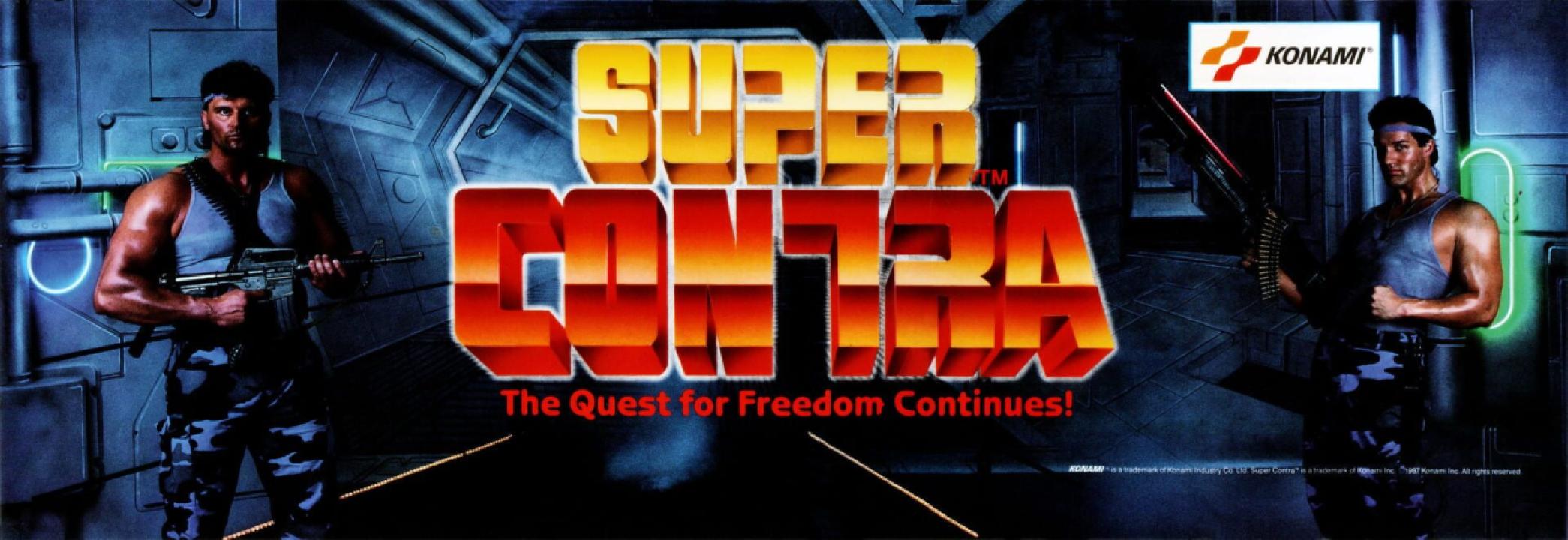 Super Contra is a Run and Gun-style action game produced by Konami, originally released as a coin-operated arcade game in 1988. It is the sequel to the original Contra and the second game in the Contra series released for the arcades. Like in the original game, the game centers on soldiers Bill Rizer and Lance Bean, who are once again assigned to protect the Earth from an army of alien invaders. The game features standard side-scrolling stages, as well as all new overhead stages in lieu of the original game's "3D" stages.