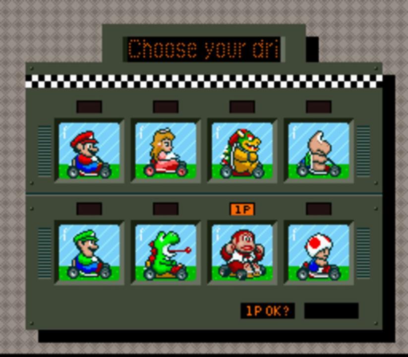 Super Mario Kart is a racing game for the Super Nintendo Entertainment System and the first game of the Mario Kart series, as well as the game that sets precedents to the fictional kart racing genre. Part of this game is heavily based on Super Mario World in terms of graphics and overall theme. Using Mode 7 scaling, the first true kart game on the SNES has you collecting coins to boost your speed while using shells and bananas to stop others on the track.