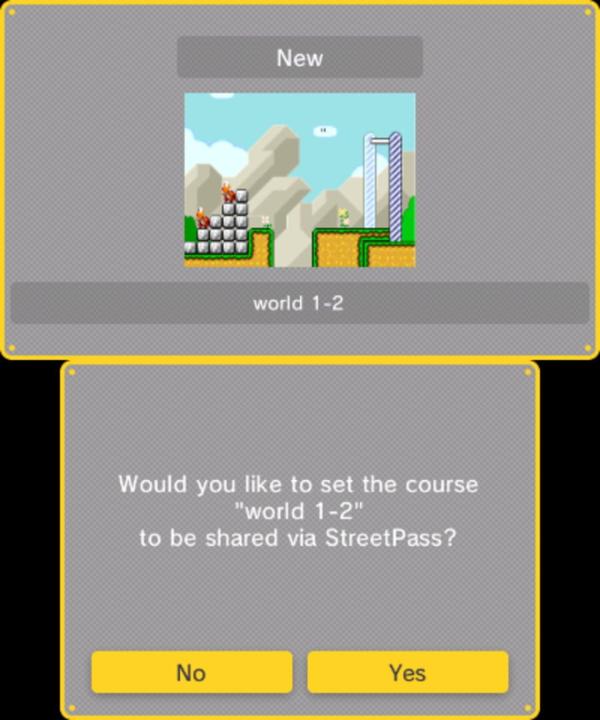 Super Mario Maker for Nintendo 3DS features all the same tools as the original Wii U version but does not support online sharing. Instead it comes with 100 courses designed by Nintendo featuring special challenges. Also new is the ability of collaborating on unfinished courses locally.