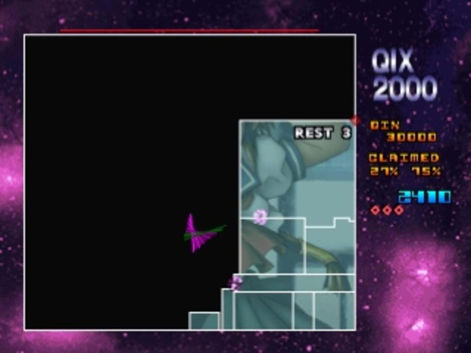 Qix 2000 offers both a perfectly-translated version of the original and the insanely fun arrangement version, which updates the graphics (giving the Qix itself a Tempest X3-style psychedelic flair) and adds a few power-ups to the mix. The speed-up power-up makes even slow draw fast, and fast draw faster, but the speed-down power-up negates that effect - and heaven help you if you hit the latter while already operating at normal speed.