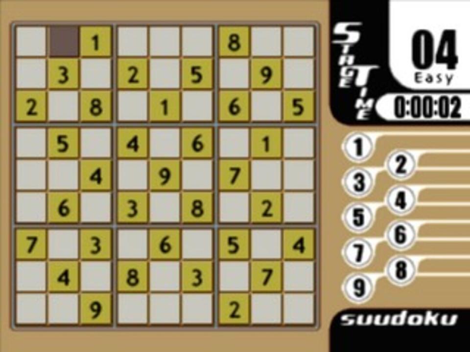 Sudoku is a logic-based, combinatorial number-placement puzzle. The objective is to fill a 9×9 grid with digits so that each column, each row, and each of the nine 3×3 sub-grids that compose the grid (also called "boxes", "blocks", "regions", or "sub-squares") contains all of the digits from 1 to 9. The puzzle setter provides a partially completed grid, which typically has a unique solution. Completed puzzles are always a type of Latin square with an additional constraint on the contents of individual regions. For example, the same single integer may not appear twice in the same 9x9 playing board row or column or in any of the nine 3x3 subregions of the 9x9 playing board. The puzzle was popularized in 1986 by the Japanese puzzle company Nikoli, under the name Sudoku, meaning single number. It became an international hit in 2005. SuperLite 1500 Series - Suudoku 5 is the fifth sudoku game in the series for the Playstation One console that features over 200 different sudoku challenges. The game features 3 different difficulty levels (easy, medium & hard) each of them with several sudoku puzzles..