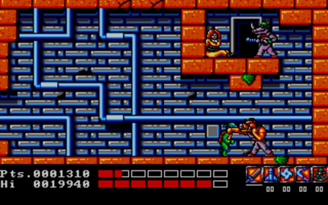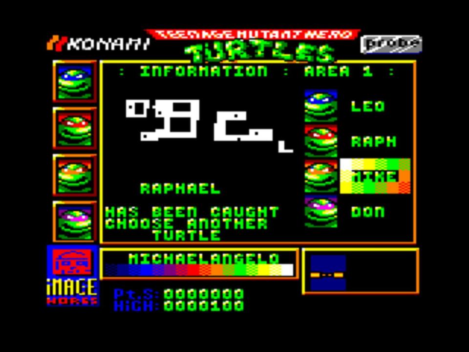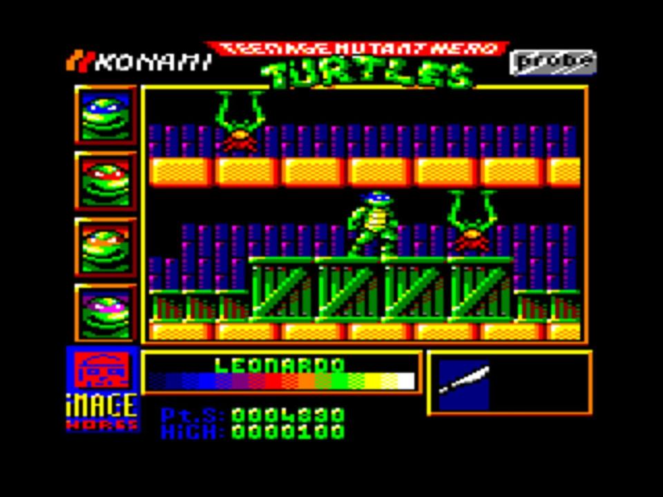 A Port of "Teenage Mutant Ninja Turtles" for home computers. Teenage Mutant Ninja Turtles is an action-platform game. It is based on the first Teenage Mutant Ninja Turtles animated series which began airing in late 1987.