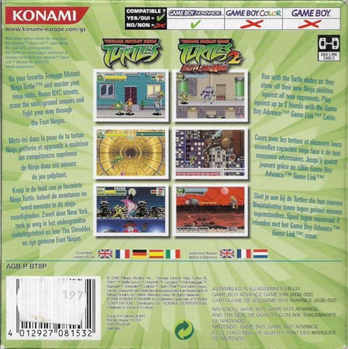 The two Game Boy Advance games based on the 2003 TMNT animated series were later re-released on the same cartridge.