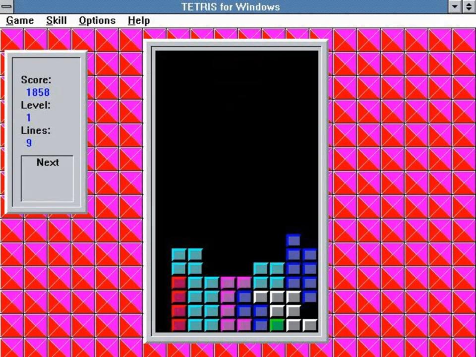 Tetris is a Windows port of the game included as part of the first Microsoft Windows Entertainment Pack, and later re-released as part of Microsoft's Best Of Windows Entertainment Pack.