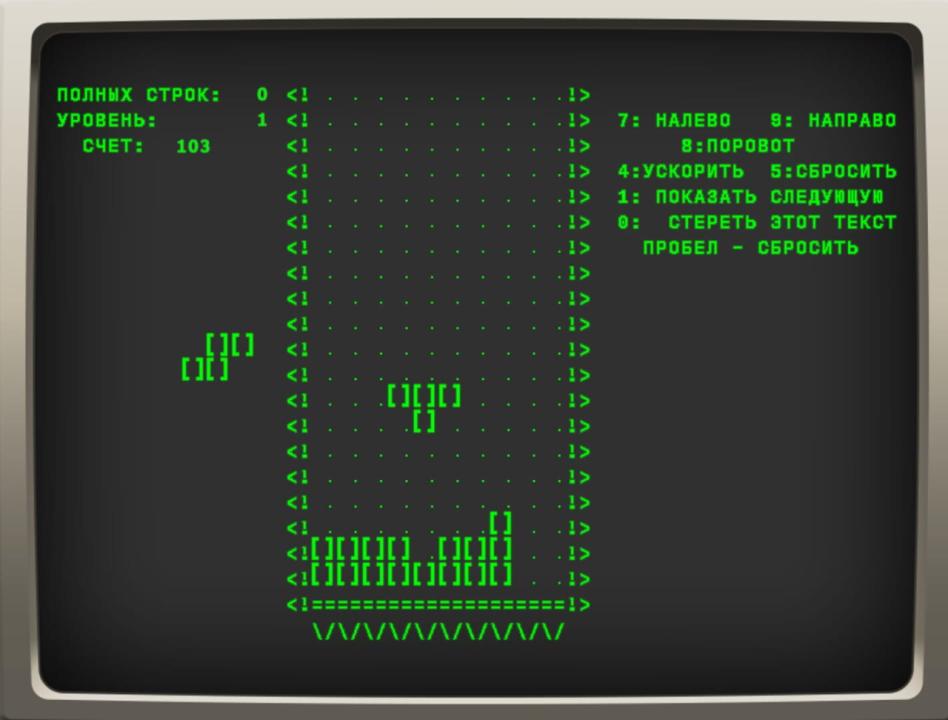 Tetris E60 is web game released to promote the movie Tetris. It emulates the look of the original Tetris prototype for the Electronika 60 by Alexey Pajitnov.