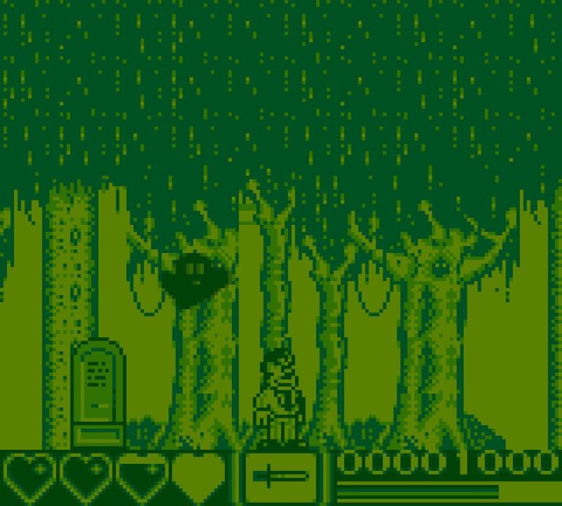 The Addams Family for Game Boy is a side-scrolling platformer based on the movie of the same name. The player takes the role of Gomez who searches for his missing family members. To find them he has to explore six different parts of the mansion, e.g. the forest or the graveyard, which are basic platform levels: the player moves from left to right while jumping a lot and avoiding enemies. In contrast to the other versions of the game he has weapons to his disposal, e.g. a throwing knife. Other differences are a unique level design and another health system: Gomez has five hearts which practically act like a life meter because every hit only takes away a part of a heart.