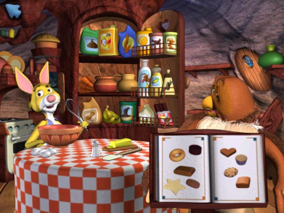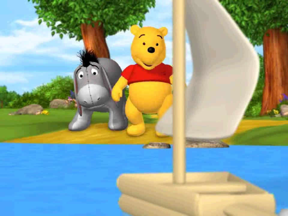 Playhouse Disney's The Book of Pooh: A Story Without a Tail is based on a Disney television series that is in turn based on characters created by the author A. A. Milne. The characters in the game are animated to resemble the Bunraku puppetry style of the series. As the game begins, Pooh and his friends are gathered in the Hundred Acre Wood discussing the fine-ness of the day when Eeyore announces he has lost his tail. The friends quickly offer to help him find it, and the player can select any of five characters to set off on a search.
