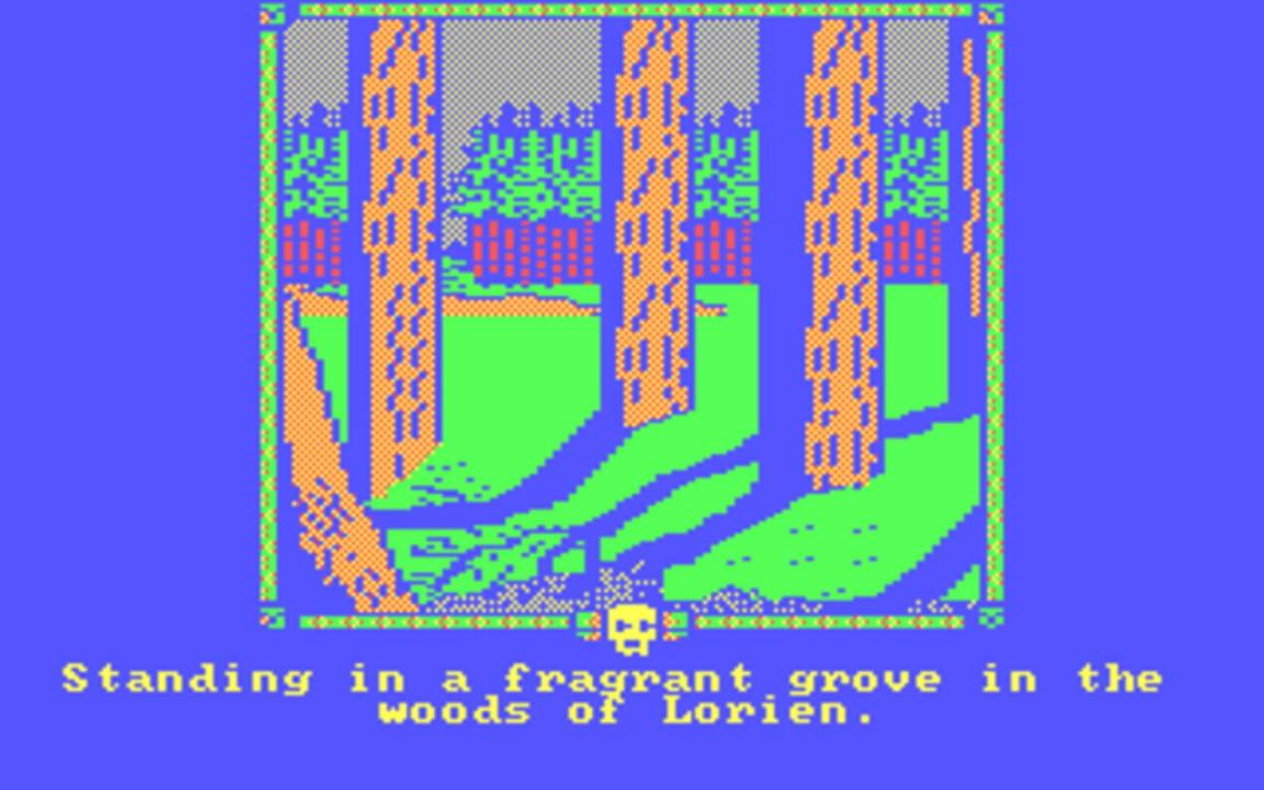 The Fellowship of the Ring is an interactive fiction (with graphics) game based on the first volume of J.R.R. Tolkien's novel The Lord of the Rings, describing the efforts of the Hobbits Frodo, Pippin, and Sam and their quest to bring the ring to Mount Doom. The game is divided into two parts (represented by two separate executable files: DOS version). The first part starts with Frodo at his home in the Shire, where eventually you will team up with the other Hobbits Pippin and Sam, as well as Aragorn and Gandalf. From meeting with Tom Bombadil, the Green Knight, the Balrog and ends with the Nazgul River incident. The second part of the game starts with forming of the fellowship, thus adding new team members: Boromir, Legolas, etc., until the end of the novel.