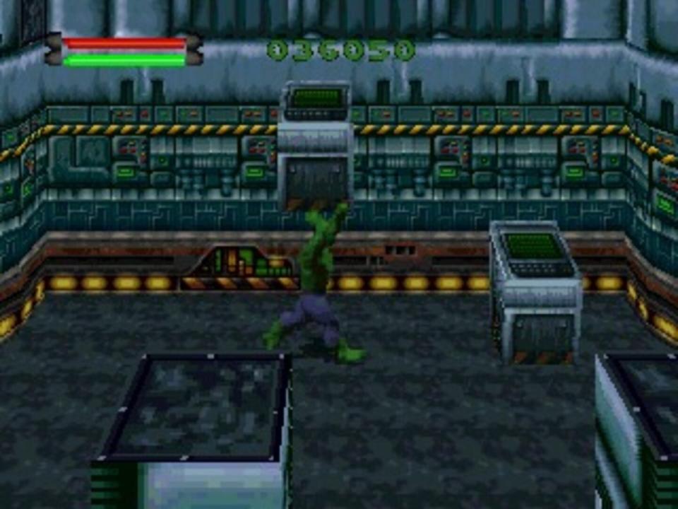 Most levels include at least one arch-enemy, such as Piecemeal, Trauma & Lazarus or the U-Foes. Luckily, the Hulk’s regenerative powers allow him to regain health slowly. Little seems to be left of the Hulk’s legendary leaping capacity, however, so the green meat ball is forced to hop from platform to platform every now and then.