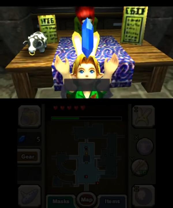 A Nintendo 3DS remake of the Nintendo 64 game The Legend of Zelda: Majora's Mask that features graphical modernizations and gameplay changes, including quality-of-life improvements, UI streamlining, additional options for aiming controls and difficulty tweaks. The Legend of Zelda Majora'so Mask 3D Limited Edition includes Limited Edition Skull Kids Figurine.