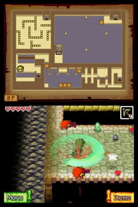 The Legend of Zelda: Phantom Hourglass is the first Zelda game for the Nintendo DS and a direct sequel to The Wind Waker. The art direction is the same cel-shaded style as the Wind Waker but is displayed from a classic top-down perspective. The gameplay is structured similarly to other games in the series and is divided into two major gameplay sections: sailing between islands and exploring the islands and their dungeons on foot. The touch screen is used to make Link move and attack instead of buttons, you can also make notes of secret treasures and items on the map simply by writing them down. The game received critical acclaim from reviewers, who agreed that the game was a worthy sequel to The Wind Waker.