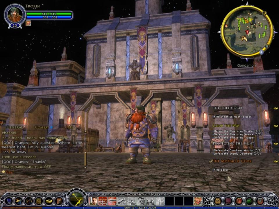 Much of the gameplay is typical of the MMO format: The player controls a character avatar which can be moved around the game world and interacts with other players, non-player (computer-controlled) characters (or "NPCs") and other entities in the virtual world. Camera angles can be switched between first-person and third-person options. Characters are improved by gaining levels. A character's level increases after it earns a set amount of experience points through the player versus environment (or "PvE") combat and storyline adventures. Characters' abilities are improved by increasing in level, but character skills must be purchased from specified NPCs after gaining a new level. The main storyline (also known as the "Epic Quest Line") is presented as a series of "Books", which consist of series of quests called "Chapters". There were initially eight Books when the game was released, with new books added with each free content update. Tolkien's Middle-earth as represented in The Lord of the Rings Online implements magic in a different manner than other MMORPGs such as World of Warcraft. There are only five "wizards" in the fictional world, none of which are player-controlled. Instead, there are active skills which require "power" (the equivalent of magic points). Some skills behave like magic (like healing or throwing a burning ember at an enemy), but are based on "lore". In addition, objects and artifacts are used to create effects similar to magic. Other features include a fast travel system and a detailed quest log with tracker and history.