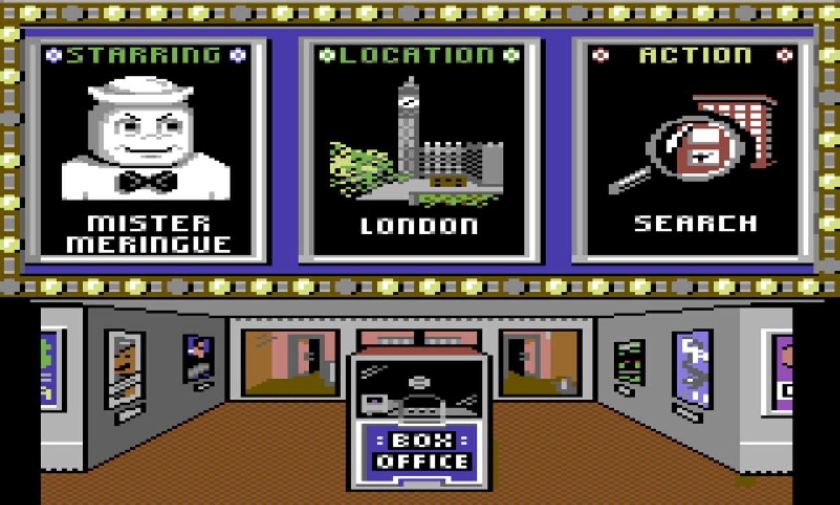 The gameplay is depicted on a movie screen in front of a movie theater crowd simulating an actual monster movie. Each scenario even starts off with an advertisement, (for popcorn and "Gummi Glogs"; in the Apple II version "Godzilla Mouthwash" is also featured), and other attractions, (such as promotions for Epyx's own Summer Games) before the "Feature Presentation" of the game begins.