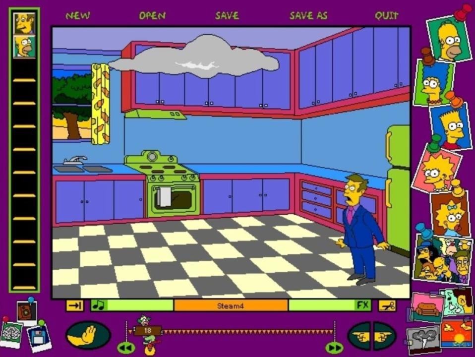A diorama toolset for creating small animations with various Simpsons characters, settings, voice clips, music cues, and props.