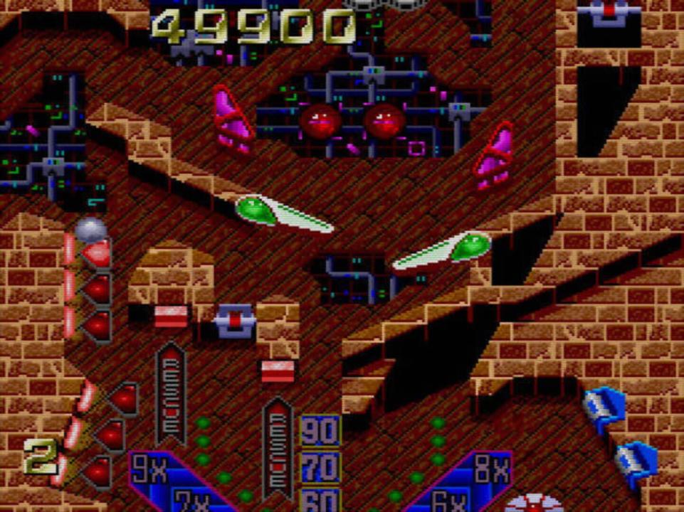 A sci-fi themed pinball game on the TurboGrafx-16. The pinball can activate time machines which sends it to bonus tables in different time zones. Time Cruise is a pinball game from FACE with a sci-fi theme and multiple tables. Unlike most pinball games with extended play zones, these tables are to the left and right of the core table, and the pinball can switch between them by passing through connecting tunnels. In addition, the player can power up time machines by hitting several levers with the pinball. Entering a time machine takes the pinball to a number of different time zones, each providing a possible score boost or extra ball.