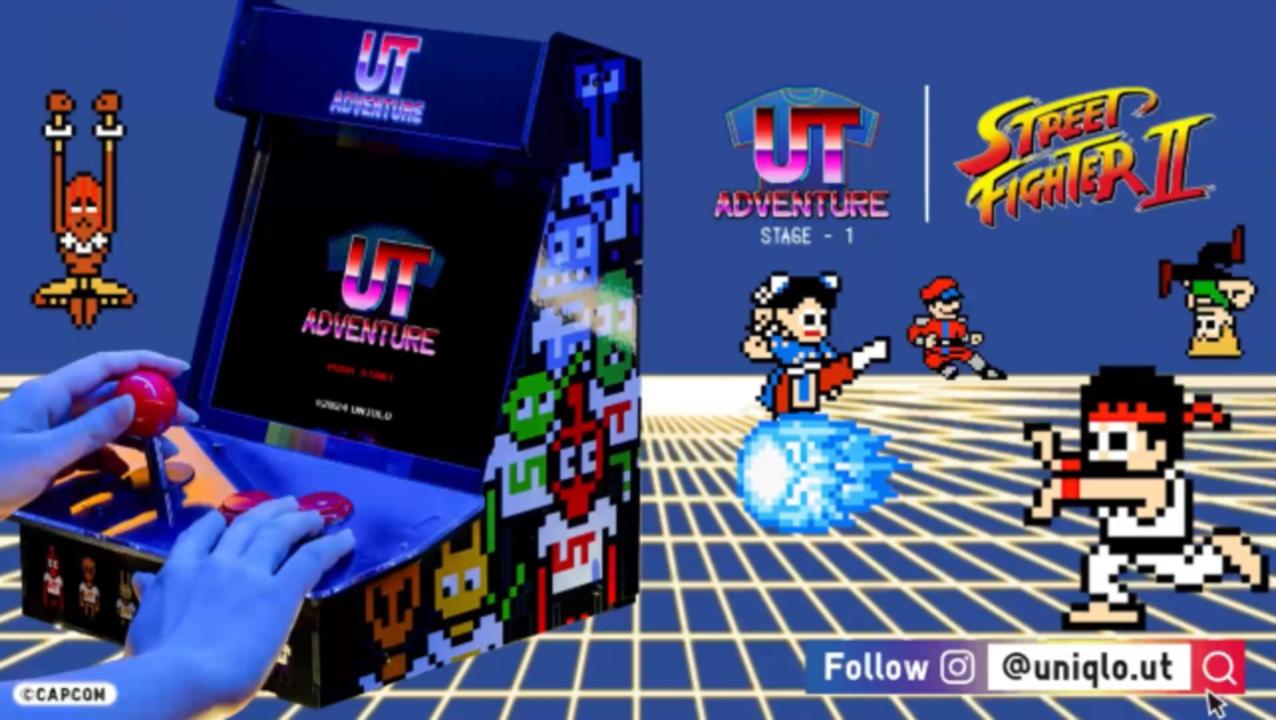 UT Adventure is a promotional game by Uniqlo made as a part of their Capcom 40th anniversary line. The game was released for mobile browsers, alongside a physical arcade machine for a limited time event at Uniqlo Harajuku and a mini-arcade version that's being released as a part of a giveaway for the event (25-MAR-2024 - 21-APR-2024).