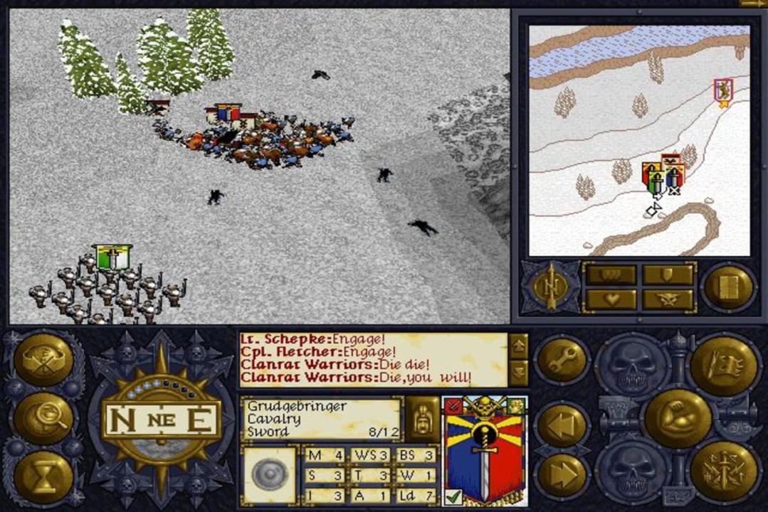 Warhammer: Shadow of the Horned Rat offers over 25 different troop types, 20 spells and nine characteristics for each regiment: movement, weapon skill, ballistic skill, strength, toughness, wounds, initiative, attack and leadership ability. In order to save campaign progress, players must have a memory card with at least one block free. Battles consist of two phases: deployment and real-time fighting. Deployment allows you to position your regiments within an area designated by white flags. This involves turning them to face certain enemies, issuing orders to attack, move (including setting waypoints and patrol loops) or simply hold ground. Combat involves charging the enemy, using magical spells (if available) or firing long-range weapons, such as arrows or catapults. Of course, line of sight and terrain will influence how successful your attacks are, and the emotion level (fear, hatred or frenzy) as well as the experience of your troops will also play a significant role. Each battlefield can also hold various magic items that may help in future battles.