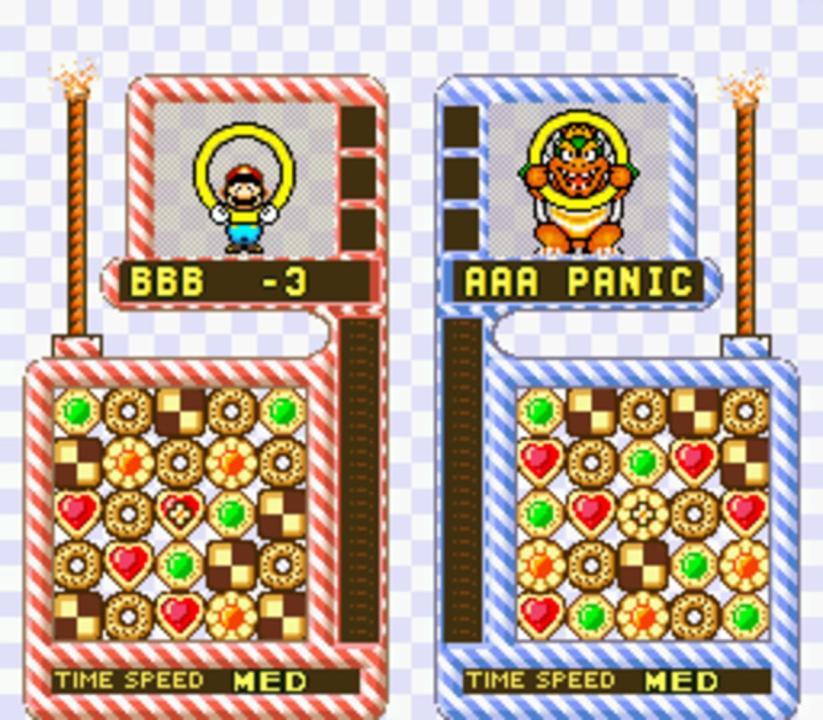 The SNES version of the game has the same form of VS mode and Action mode as its predecessor. However, there are some notable differences available between the old and new versions. First, the graphics are vastly improved, and infused with rich colors that make the game much more aesthetically pleasing than the early versions of the game. The design for Yoshi is another important difference, evolving from his NES incarnation into one that is more similar to the one seen in Yoshi's Island. The SNES version has an additional puzzle mode where players have to clear the game board in a limited number of moves. There are 100 unique puzzles in this mode.